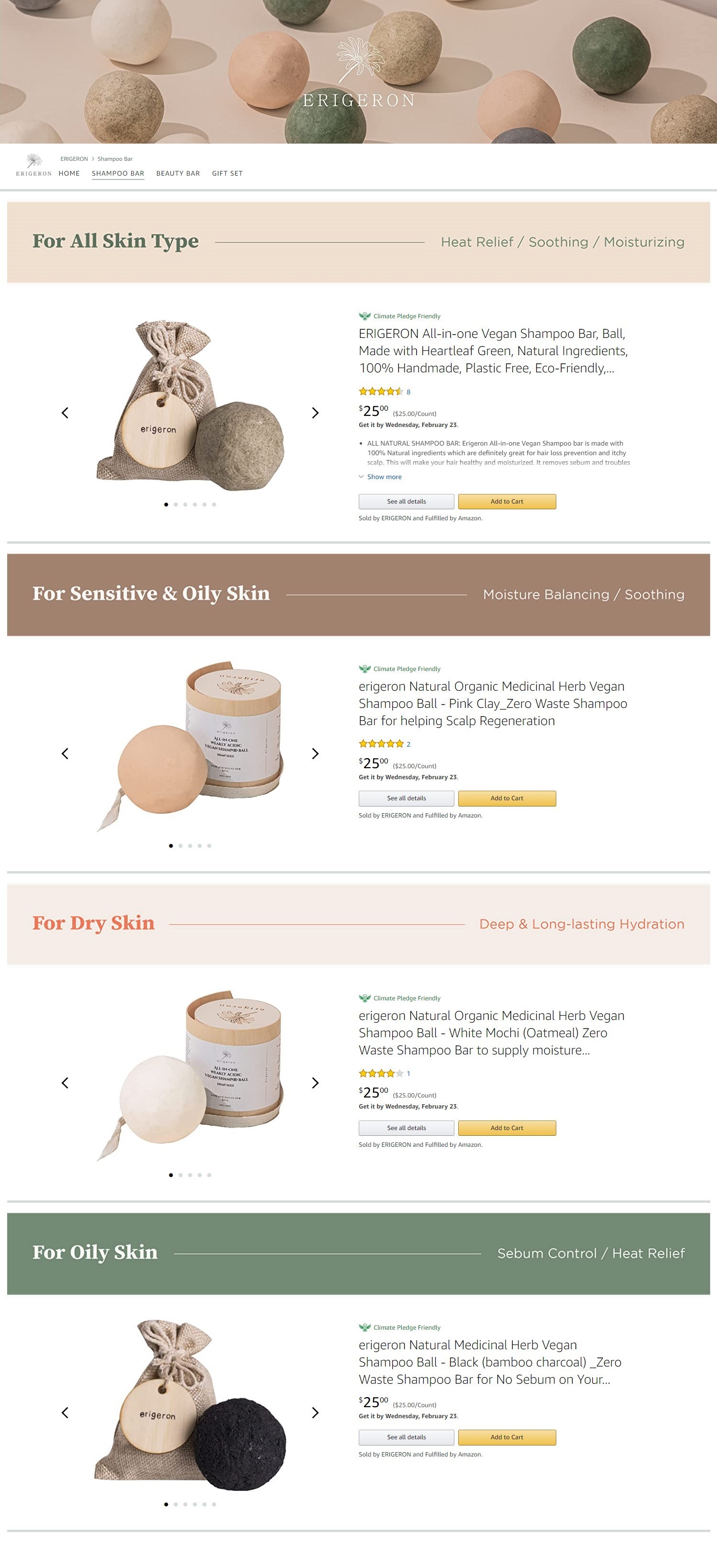 Designed Erigeron's Amazon Brand Store from the ground up as they entered the U.S. market.