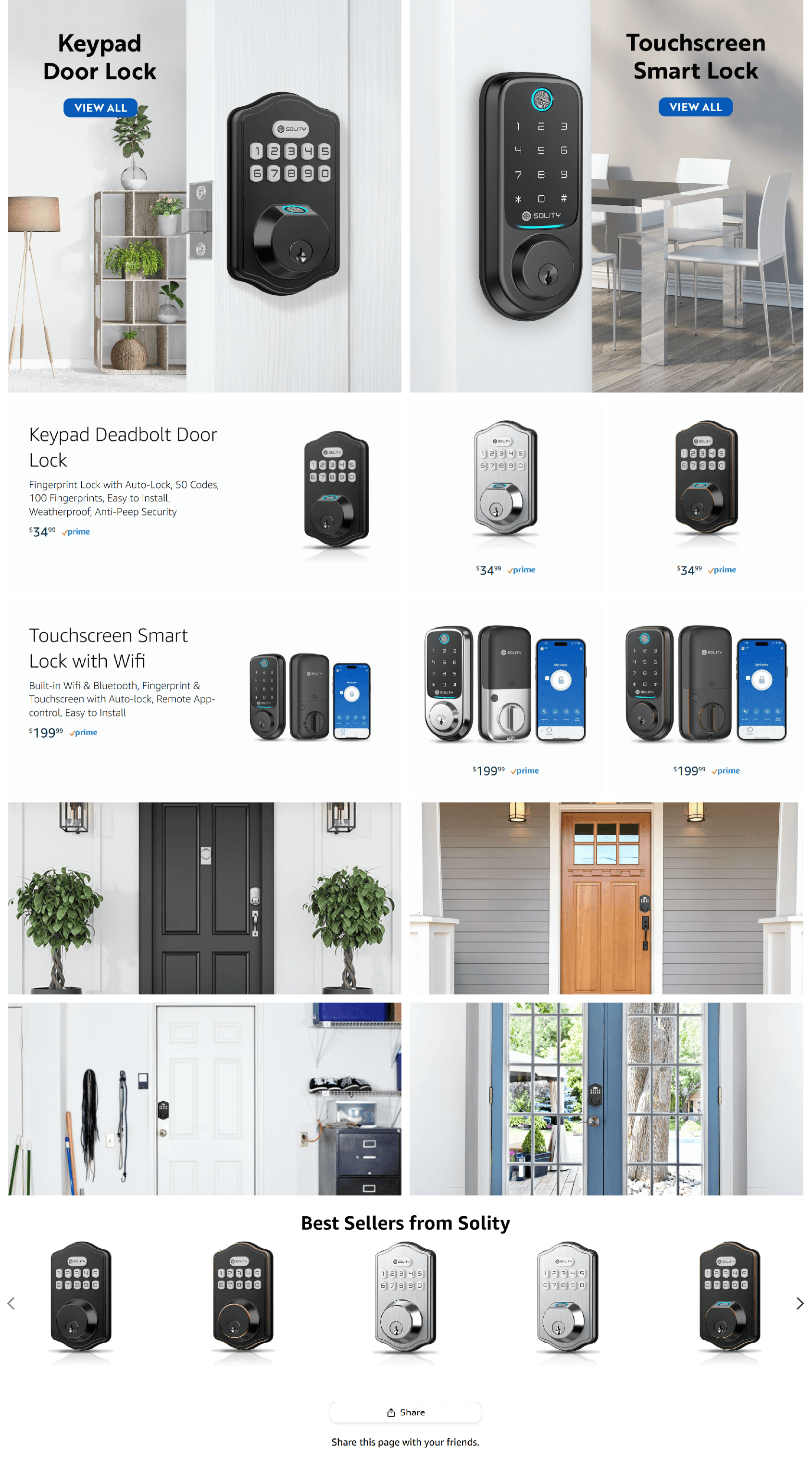 A comprehensive Amazon brand presence built for Solity, a Korean smart lock company with over four decades of security innovation.